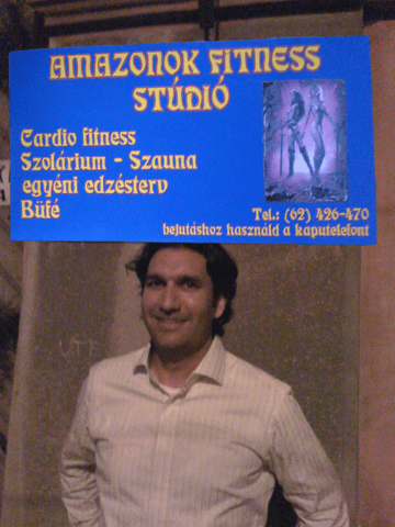 Drupalcon Szeged 2008. Kieran and I are walking to meet some Drupalers at a patio bar, and I spot a sign for a fitness studio.